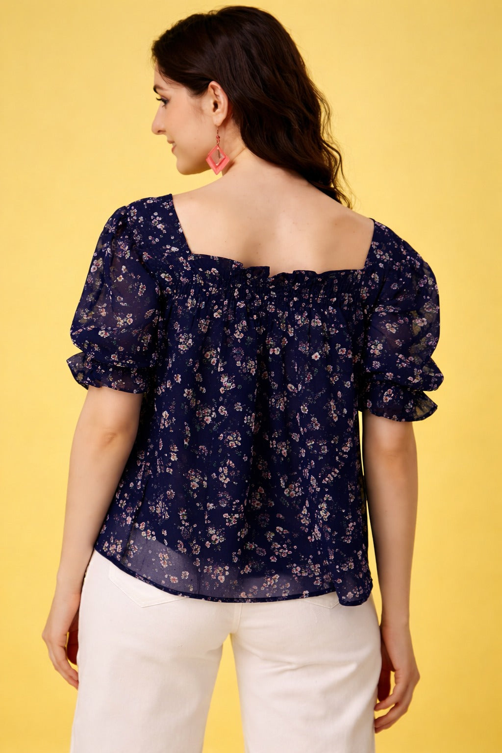 The off-shoulder neckline with elastic detailing gives a flattering fit, while the puff sleeves enhance the feminine look. Perfect for brunch dates, vacations, shopping days, and casual outings.
