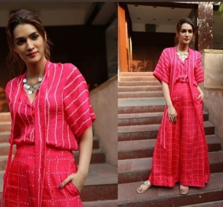 Ye ek stylish pink co-ord set hai jo modern comfort aur chic ethnic-fusion vibe ko perfectly balance karta hai. Is outfit ka base colour bright pink (rani pink) hai, jisme white stripe aur dotted prints diye gaye hain jo look ko fresh, trendy aur eye-catching banate hain.